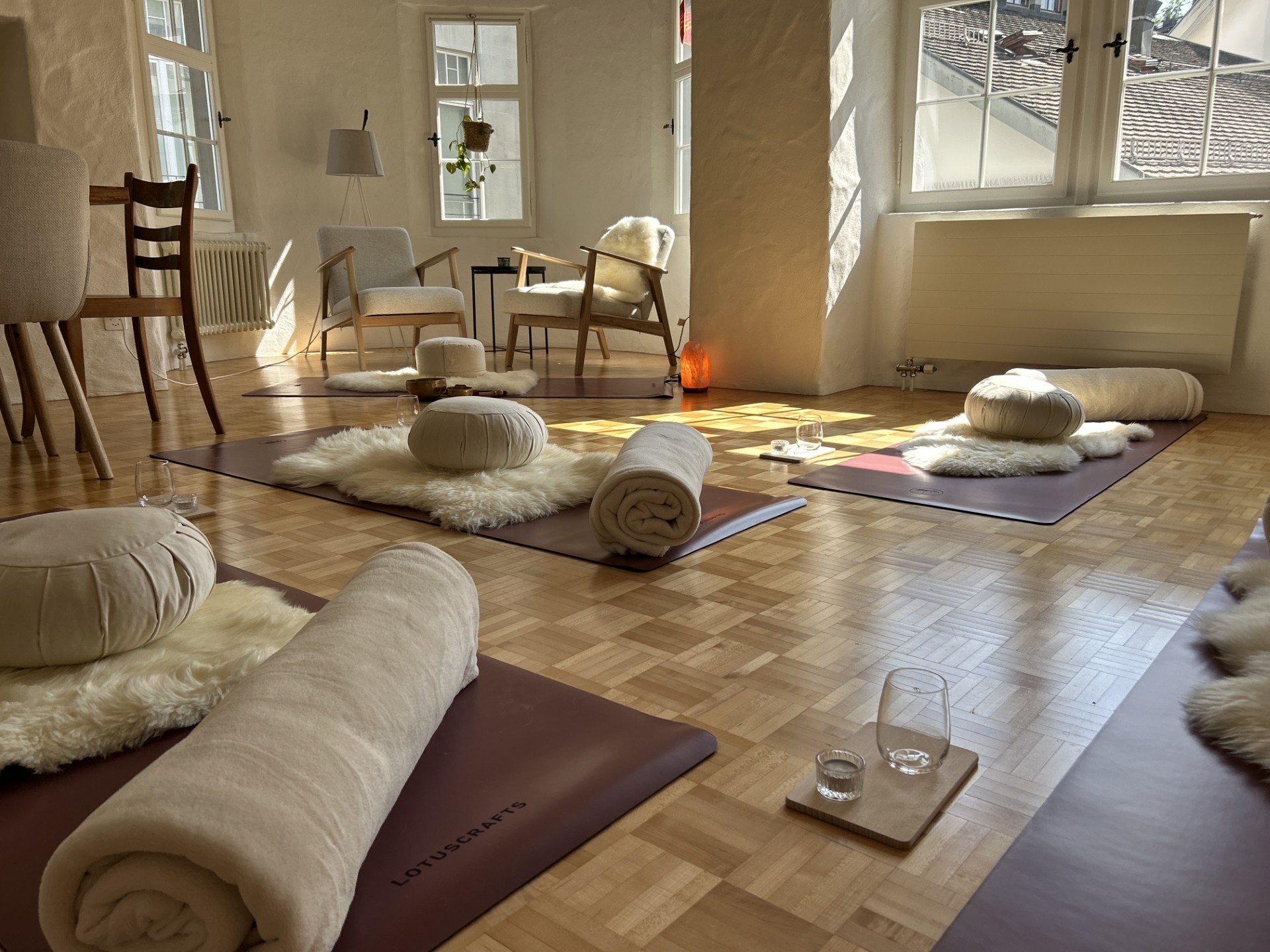Die Praxis sowohl auch der Raum für Achtsamkeit, Meditation, Yoga und Klang, befindet sich im 2. Stock.
